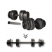 - 2в1 для різних вправ: використовуйте гантелі для ізольованої роботи над руками або плечима, а штангу – для базових силових рухів, таких як лежачий або жим присідання.