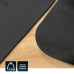 На звороті килимок виготовлений з гнучкої гуми, що забезпечує відмінне зчеплення килимка з поверхнею. Обидва матеріали, що використовуються у виробництві, не мають запаху та приємні для шкіри, навіть схильної до алергії. Загальна вага мату складає 3,18 кг, гарантує, що килимок не випинатиметься або скручуватиметься на закінченнях килимка.
