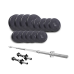 Набір складається з дисків, покритих ABS-пластиком, прямого, W-подібного грифа та двох гантельних грифів. Висока якість виготовлення та довговічність деталей гарантує, що ваші тренування з цим набором проходитимуть комфортно, безпечно та з максимальною користю.