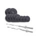 Набір складається з дисків, покритих ABS-пластиком, та сталевого хромованого грифа. Висока якість виготовлення та довговічність деталей гарантує, що ваші тренування з цим набором проходитимуть комфортно, безпечно та з максимальною користю.