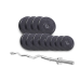 Набір складається з дисків, покритих ABS-пластиком, та сталевого хромованого грифа. Висока якість виготовлення та довговічність деталей гарантує, що ваші тренування з цим набором проходитимуть комфортно, безпечно та з максимальною користю.