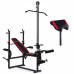Лава тренувальна Hop-Sport HS-1065. Спинка зі змінним кутом нахилу може бути зафіксована в п'яти положеннях: 30 градусів, 22 градуси, 15 градусів, 0 градусів і мінус 15 градусів. Регульовані стійки з зажимами дозволяють швидко і безпечно зупинити штангу після завершення виконання вправ. У комплекті з лав йде парта Скотта для тренування трицепсів і верхня тяга, яка дозволяє проводити різноманітну ефективну підготовку м'язів верхньої частини тіла. Широкий асортимент варіантів використання доповнюється тягами для рук і ніг. До того ж лавка обладнана ручками для французьких віджимань, які покриті щільним пінообразним матеріалом. Лавка виготовлена з високоякісних матеріалів відповідно до європейських стандартів якості. Спинка і сидіння обтягнуті м'якою оббивкою і 100% екологічної шкірою. Широкі сталеві профілі гарантують безпеку під час фізичних вправ, а порошкове покриття забезпечує довговічність конструкції протягом багатьох років.