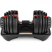 Регулировка погрузки осуществляется ручкой. Поставьте гантель на подставку, поверните рукоятки с обеих сторон к нужному весу и поднимите снаряд. Итак, вы избавитесь от необходимости каждый раз снимать фиксаторы с гантели и перемещать диски для подбора необходимого веса.
