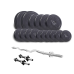 Набор состоит из дисков, покрытых ABS-пластиком, прямого, W-образного грифа и двух гантельных грифов. Высокое качество изготовления и долговечность деталей гарантирует, что ваши тренировки с данным набором будут проходить комфортно, безопасно и с максимальной пользой.