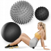 - 1 жесткий массажный мячик с шипами, 7см - для интенсивного массажа и работы с труднодоступными зонами, например, вокруг лопаток или бедер.