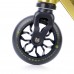 На самокат установлены колеса на спицевых дисках диаметром 110 мм, с геликом жесткостью 88А. Такой диаметр колес - это стандарт, который подходит под любую вилку, деку и тормоз, поэтому проблем с взаимозаменяемостью запчастей у самоката нет. Данный размер - это золотая середина для самоката, так как за счет этого обеспечивается маневренность, умеренная скорость, баланс прямой и хорошая амортизация в силу большого количества полиуретана. К слову о полиуретане, колеса с таким геликом отлично показывают себя в парке, на деревянном и резиновом покрытии.
