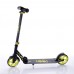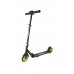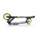 Самокат выполнен в практичном черном цвете со стильными желто-зелеными вставками на раме и колесах.