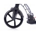 Складывается самокат одним движением, за счет специального рычага с предохранителем. Предохранитель убережет конструкцию от произвольного складывания при случайном контакте с рычагом. Система подвески регулируется под определенный вес пользователя, обеспечивая максимально правильную работу при передвижениях по неровностям.